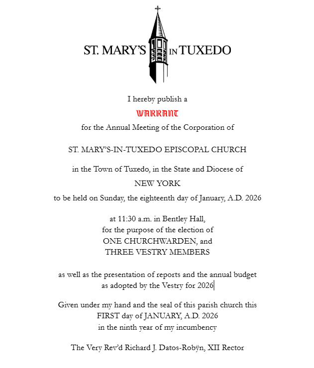 St. Mary’s is located within the historic gates of Tuxedo Park, but serves the entire community and all are welcome! Just tell the gatehouse you’re going to St. Mary’s, proceed thru the gates, and we’re immediately on the right. Plenty of free parking available.